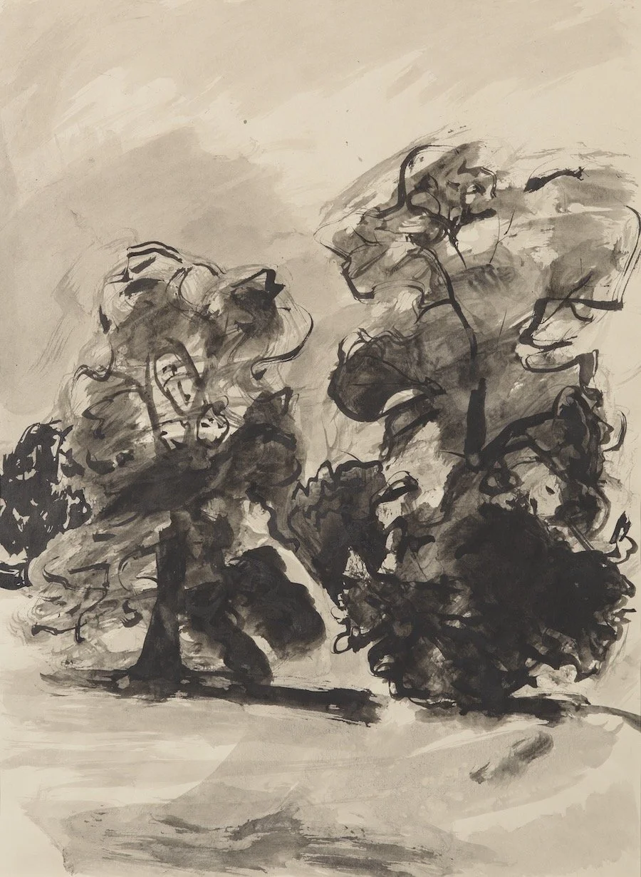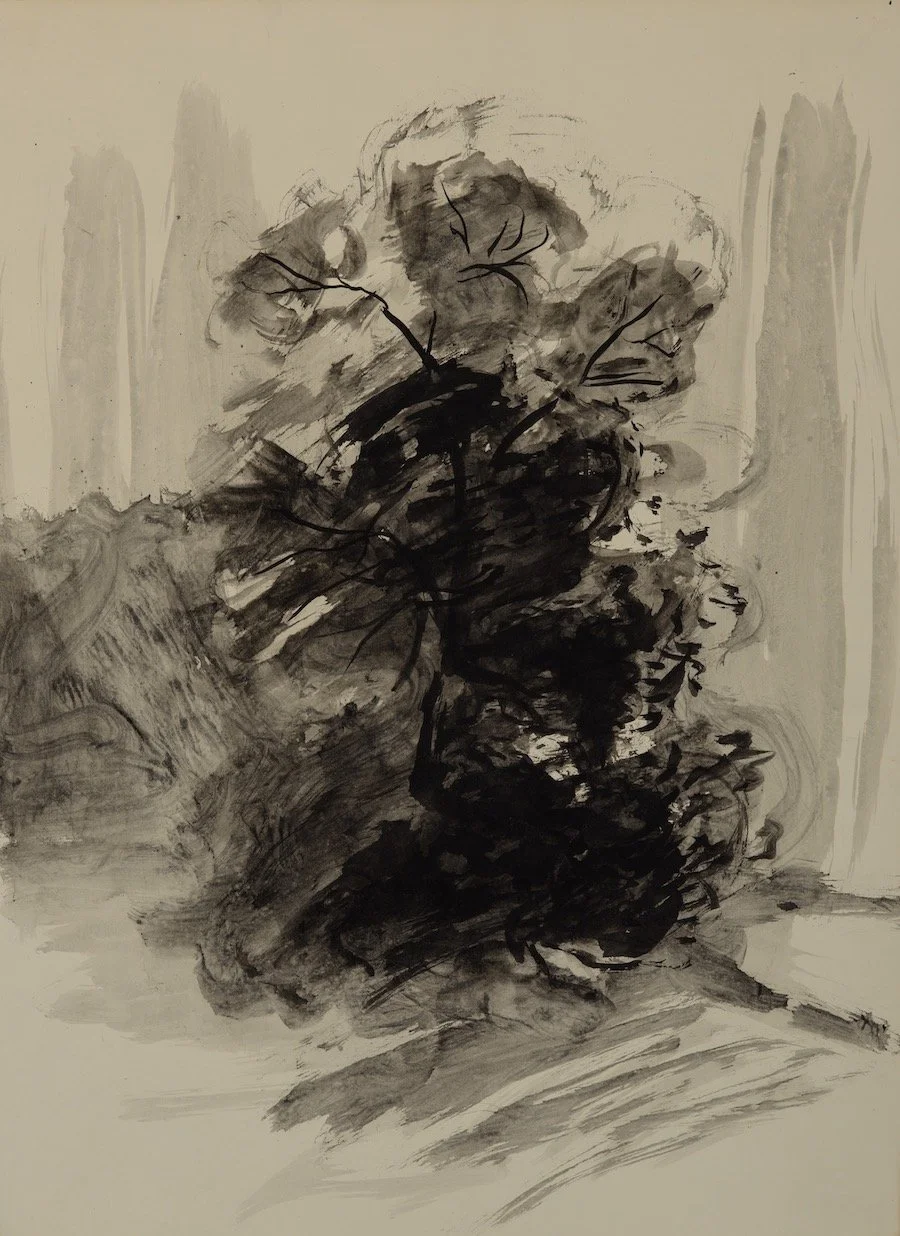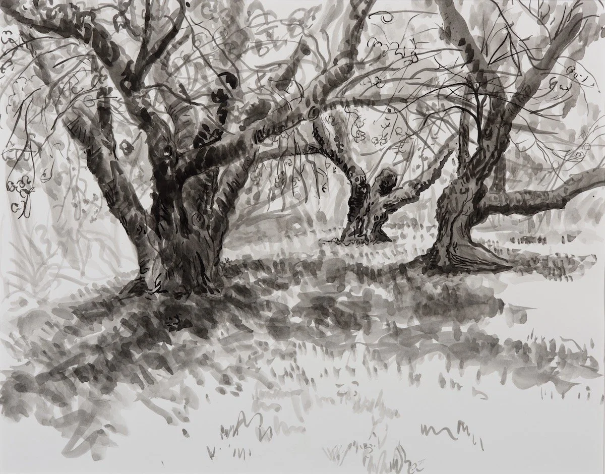 Three Cherry Trees, ink on paper, 18 x 24 inches
