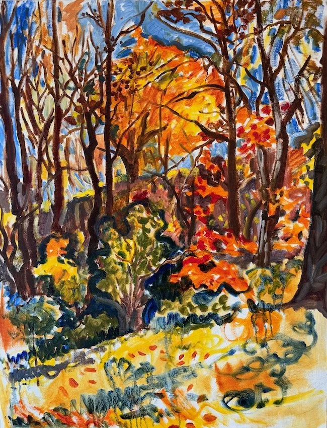 Forest Edge--Orange and Blue, oil on canvas, 36 x 30 inches